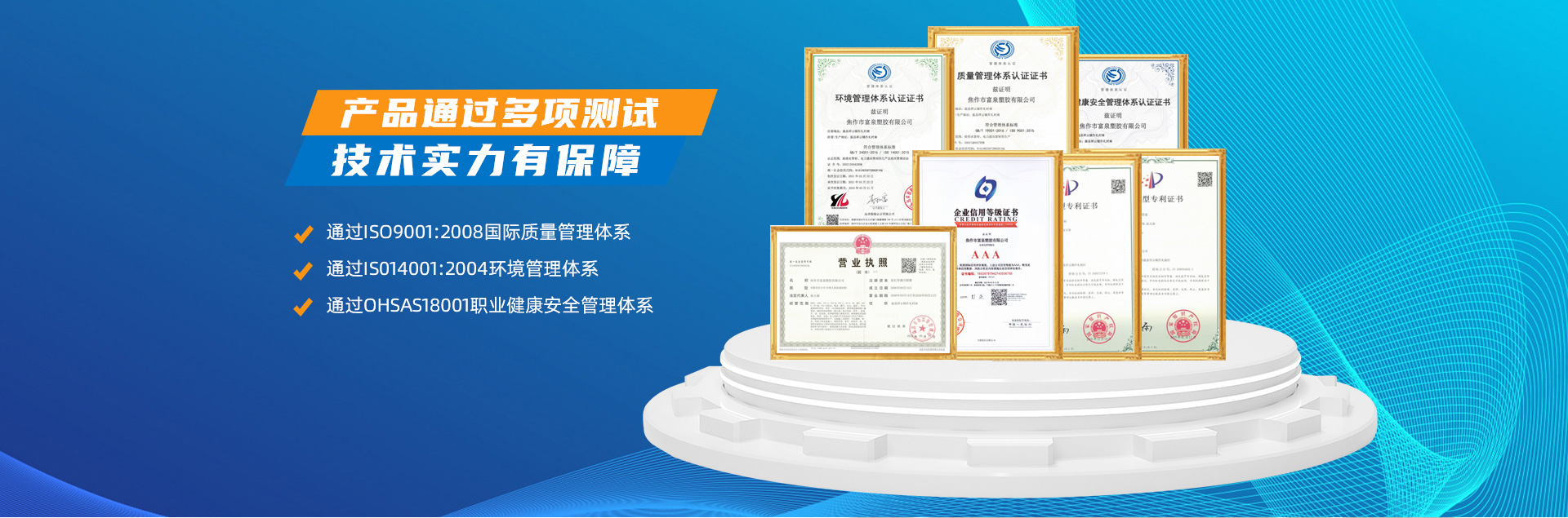 - 焦作市富泉塑膠有限公司,創(chuàng)立于1995年,是一家集研發(fā)、設計、生產、銷售為一體的大型管材企業。公司位于太極故里、黃河之濱一一河南焦作溫縣。公司占地128畝,現有職工210余人,其中具有中技術職稱的19人。生產、檢驗設備58臺(套),包括PVC實壁管生產線11套、PE實壁管生產線12套、HDPE雙壁波紋管生產線6套、PVC雙壁波紋管生產線5套,檢驗設備14臺(套)。主要產品有:Φ20mm-630mm、各種壓力規(guī)格的PVCU、PVC-M、PE給水管材,PVC-U節(jié)水灌溉管材,HDPE燃氣和礦用管材,DN200-800mm的HDPE、PVC雙壁波紋管及各種噴灌、滴灌工程材料。承接大中型市政供排水、飲水安全及節(jié)水灌溉等工程。 富泉塑膠公司重視產品的質量、安全、環(huán)保和節(jié)能,在同行業中率先完成了“新華節(jié)水產品認證”,全方面通過ISO9001:2008國際質量管理體系、IS014001:2004環(huán)境管理體系和OHSAS18001職業健康安全管理體系的一體化導入,并建立起規(guī)范的現代企業管理體系。公司以“質量”為先導,采用質量跟蹤、多環(huán)節(jié)把關的方法,組建具有行業水準的企業技術檢測中心,常年委托水利部節(jié)水灌溉設備檢測中心、河南省產品質量監(jiān)督檢驗院對產品跟蹤檢測,并由中國人民保險公司承保產品質量。公司連續(xù)多年被河南省水利廳確定為“安全飲水設備、節(jié)水灌溉設備”定點生產企業,并獲得“中國名優(yōu)產品”“質量、服務、信譽AAA企業”“河南省**產品”“河南省水利企業”“河南省守合同、重信用企業”等榮譽稱號?! 「蝗苣z公司堅持“用戶為上”的服務理念,長期以來,全方面關注客戶價值,不斷提升服務水平。服務隊伍常年為客戶的產品設計、施工、安裝提供合理的方案和全程細致、周到、**、快捷的技術服務。公司自成立以來,一直堅持以人為本的宗旨,塑造企業形象,并致力于新產品的開發(fā),憑借雄厚的技術開發(fā)能力,先進的工藝制造流程,嚴格的質量管理保證體系,優(yōu)良的售后服務網絡,已成為河南省大的飲水、灌溉及排水管材設備制造商。產品暢銷全國,而且還以公司雄厚的綜合實力在業界中占據著重要的地位。